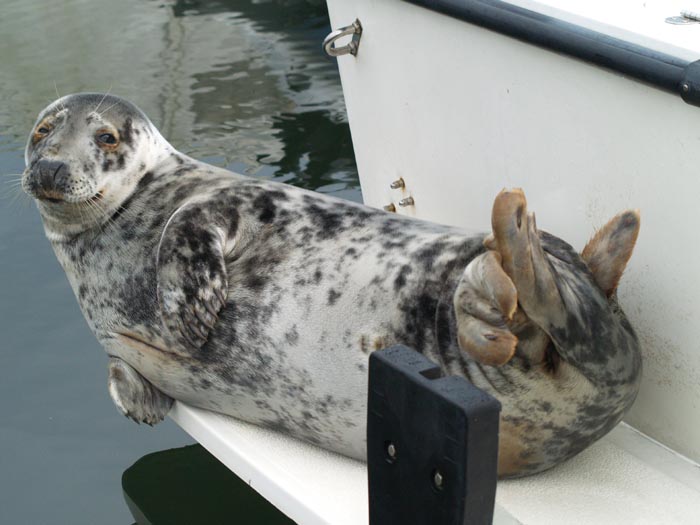 Seal in Kinsale Harbour April 2006. (s)he found a nice flat 'rock' to bask on where the tide never goes out!